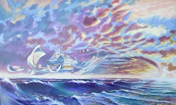 Akryylimaalaus kankaalle. Teoksen voi maksaa myös korottomalla osamaksulla.